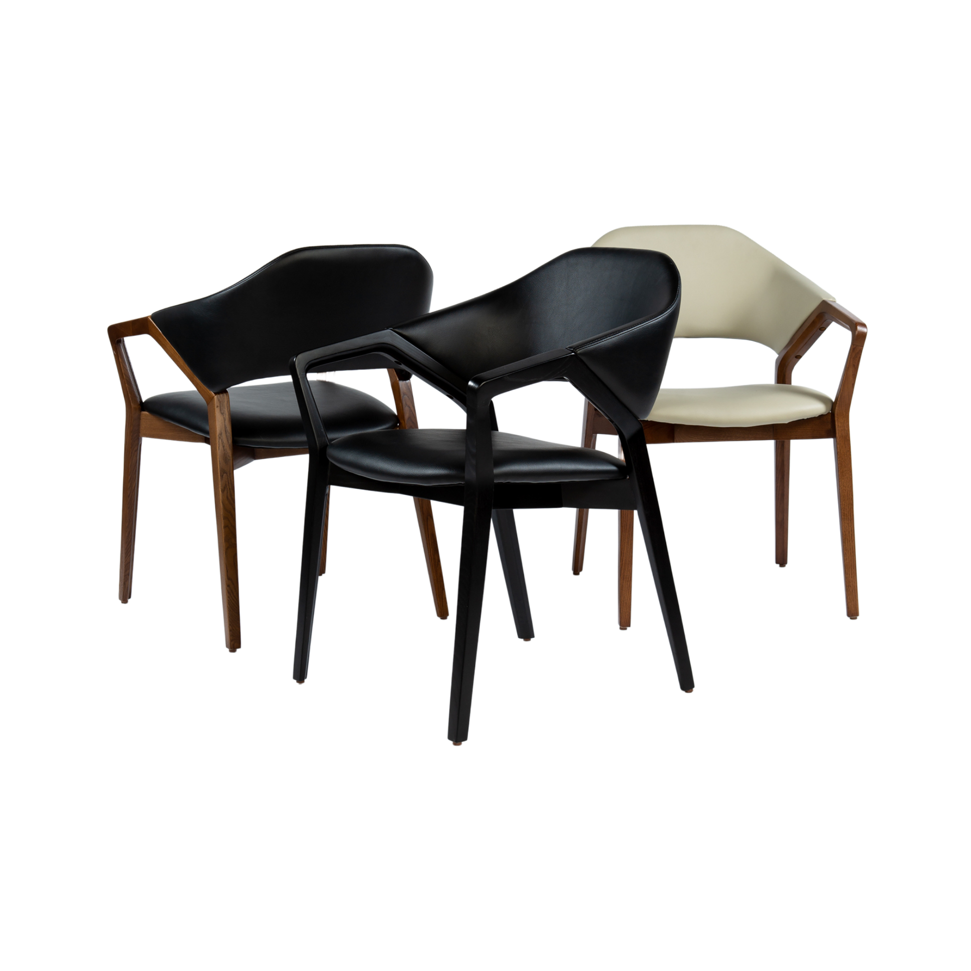 Avec un design ultra élégant et moderne, Mila est fabriqué à partir de certains des meilleurs matériaux disponibles. Une structure en bois de frêne massif – teinté noyer – soutient une assise et un dossier confortables en éco-cuir haut de gamme. Le Mila est une chaise tendance qui enrichira n'importe quelle pièce.